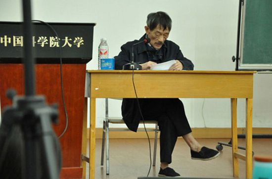 [國內(nèi)新聞]4月21日,人人網(wǎng)流傳一張照片,一位其貌不揚(yáng)的老人坐在中國科學(xué)院大學(xué)的講臺(tái)前,低頭念著發(fā)言稿。這位蓄著胡子、一身黑衣、黑布鞋、沒穿襪子的老人不是來做脫貧報(bào)告的,而是一名中科院院士,叫李小文。據(jù)《經(jīng)濟(jì)觀察報(bào)》2009年報(bào)道,當(dāng)時(shí)61周歲的他每天能喝一斤二鍋頭。