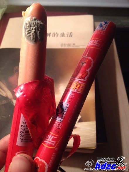 據(jù)邢先生描述,“我先剝開(kāi)一根雙匯火腿腸吃的時(shí)候就覺(jué)得不對(duì)勁,塑料味特別大,但想到雙匯的高質(zhì)量他就沒(méi)多想,可當(dāng)懷孕5個(gè)月的妻子拿起一根剛咬開(kāi)就被驚呆了,在火腿腸的頂部竟然出現(xiàn)一大塊黑色霉變。”這讓夫妻倆頓時(shí)感到反胃,妻子嘔吐劇烈。