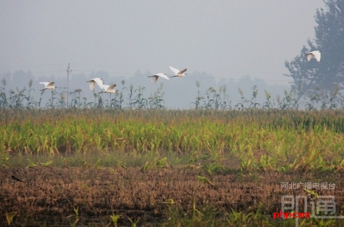 連日來(lái),一群約有40只的白鷺棲息在邯鄲廣平縣東張孟鄉(xiāng)附近的一片玉米田地里。