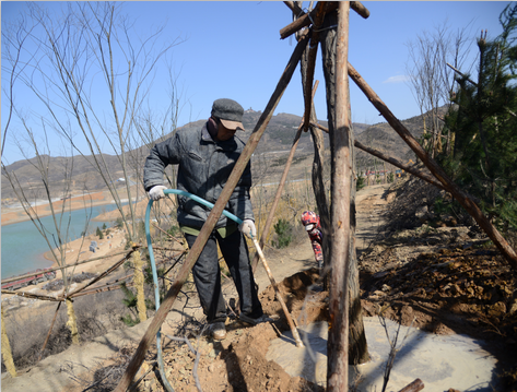 “山東泰安拉過(guò)來(lái)的白皮松、油松等樹(shù)木,用鉤機(jī)運(yùn)到山坡上,抓緊時(shí)間培土栽種。”“江蘇拉過(guò)來(lái)的紅梅,大家卸載時(shí)一定要小心翼翼,不要折斷枝干!”……3月1日,記者來(lái)到叢臺(tái)區(qū)紫山核心風(fēng)景區(qū)時(shí),看到紫山辦主任馬文林與植被綠化負(fù)責(zé)人陳小林正在緊張有序地指導(dǎo)綠化工作。